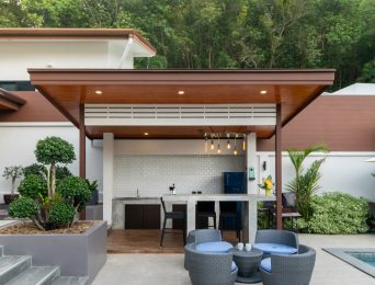 Enchanting three bedroom, three bath home with spacious one bedroom, one bath cabana, in-laws quarters. Charming living area features fireplace and fabulous art deco details. Formal dining room.